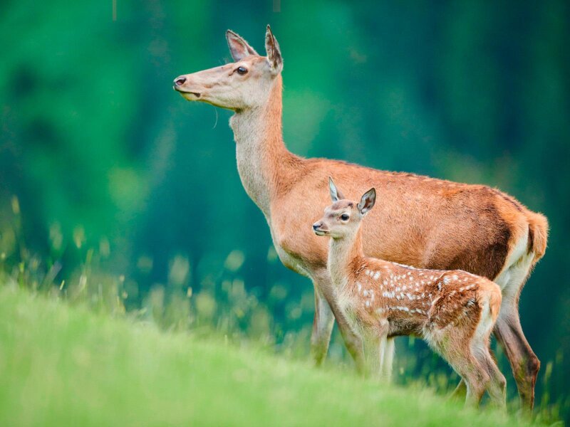 The one-hour circular path leads past red deer, fallow deer and mouflon, with no separating fences. To ensure the younger guests don't get bored, they can get up close to animals like rabbits, donkeys, goats, llamas and sheep in the popular "Streichlstadl" (petting barn). The daily wildlife feeding at 2:30 p.m. is a special highlight (except during the autumn rutting season).