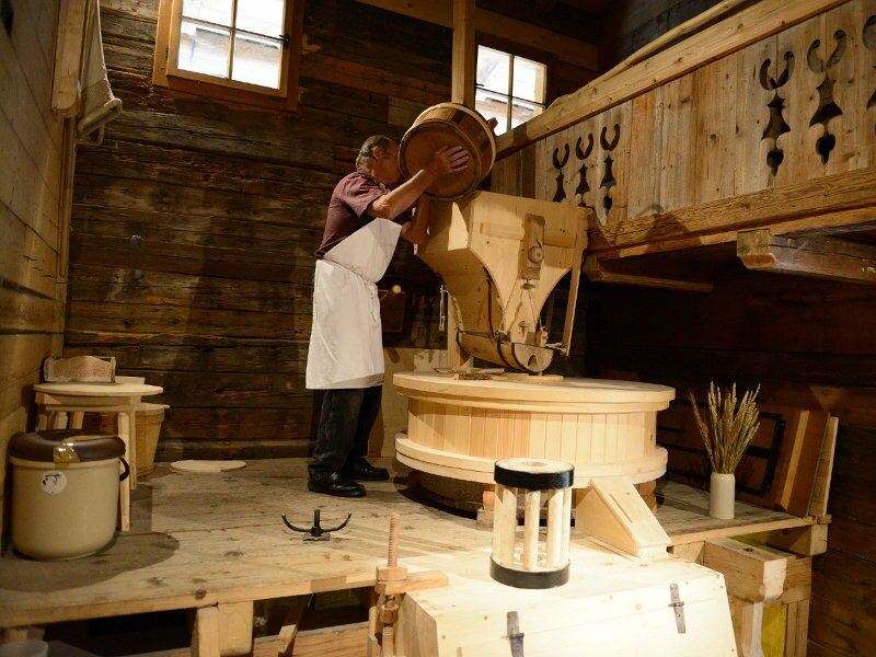 Some decades ago still 25 mills could be found in the Alpbachtal valley, all of them powered by water. There the local farmers could grind their corn. Only the so-called “Stettauer Mill”, also known as Weikart Mill remained. The association “Alpbach for European Culture” (Club Alpbach für Europäische Kultur) supported by the municipality of Alpbach rebuilt the mill on its original foundations, today it is publicly accessible every three weeks, when the flour is ground like in former times.