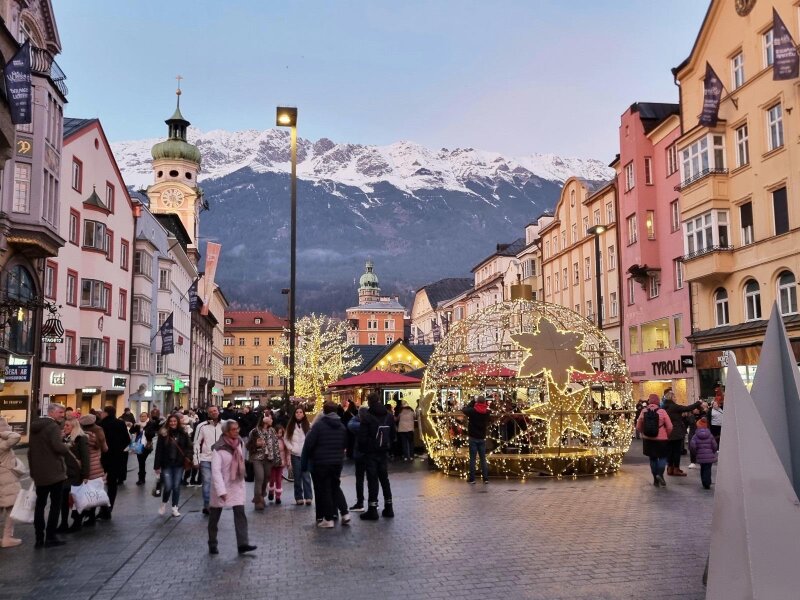 Innsbruck's grand boulevard, named after Empress Maria Theresia, shines brightly during Advent. The market along the Maria-Theresien-Strasse captivates with sparkling lights, glassware, and crystals. The offerings expand each year: In 2024, a special market awaits you with festive treasures from five continents and culinary specialities from around the world.