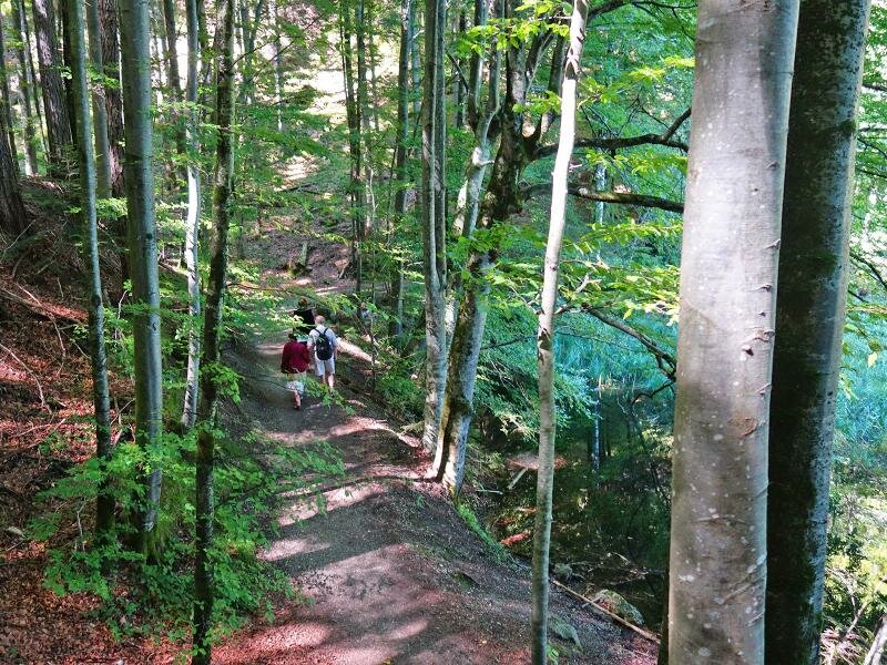 A beautiful forest path, a romantic lake and fairy-tale castles await us along the famous cross-border Road of Princes (Fürstenstrasse). It starts in Pinswang in the Tyrolean Lechtal valley, more precisely at the Gasthaus zum Schluxen tavern. The gravel path leads us uphill (60 metres of altitude difference) towards the Austrian-German boundary stone and further on to Lake Alpsee, always following the signpost “Fürstenstrasse”. Together with Mount Säugling in the background, the lake is a motif of outstanding beauty for photographers.