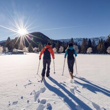 Across alpine meadows we follow a comfortable path and soon the Gramai Mountain Hut (1,263 m asl) comes in view. The sunny terrace invites us to take a rest, then we discover the proximity. The Eagle Trail, a long-distance trail, is located here. We admire the "Kas- und Speckalm" (Cheese and Bacon Hut) which dates back to the 16th century and refresh our feet in the Kneipp basin. After a few pleasant hours we start our way back.
