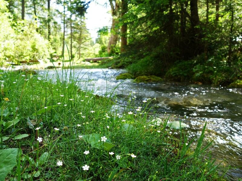 The water wells out of the ground and joins the other streams and creeks of the valley to form the Isar river. The place is called “bei den Flüssen”, which means “at the rivers”, in this area various underground waters well out of the ground. Here we are surrounded by the shady forest and moss banks. Together with the soft roaring of the water it seems to be a really magical place in the middle of untouched nature.
