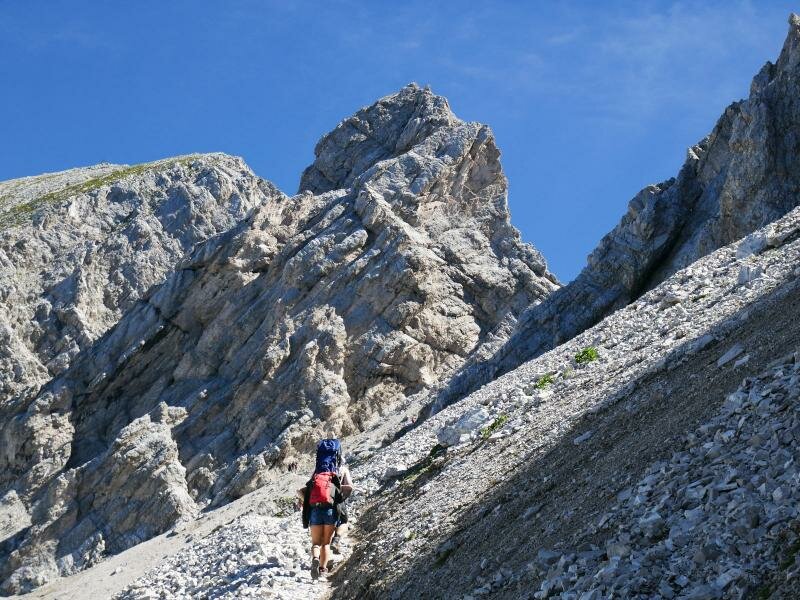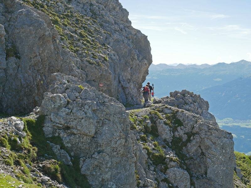 From the centre of Innsbruck straight up into the high mountains of the Northern Calcareous Alps. The tour starts by the Hungerburgbahn Funicular and then by the Nordkette Cable Car up to the Hafelekarhaus refuge at 2,270 m asl, starting point of our mountain hike. The view sweeps to the Alpine divide in the south with the Alpine City of Innsbruck beneath. This gorgeous view will accompany us for a long while along the path n° 219, the Goethe Path or Herrmann-Buhl Path, which we walk until the Pfeishütte mountain hut.