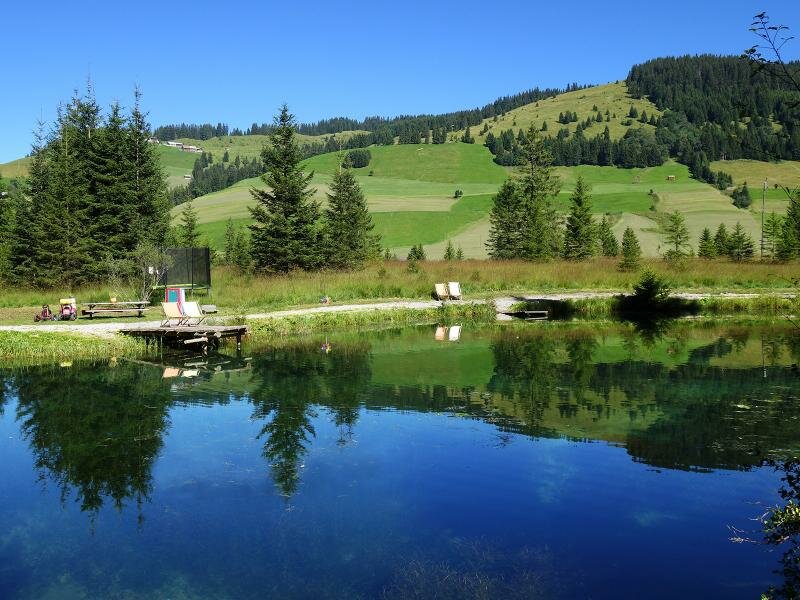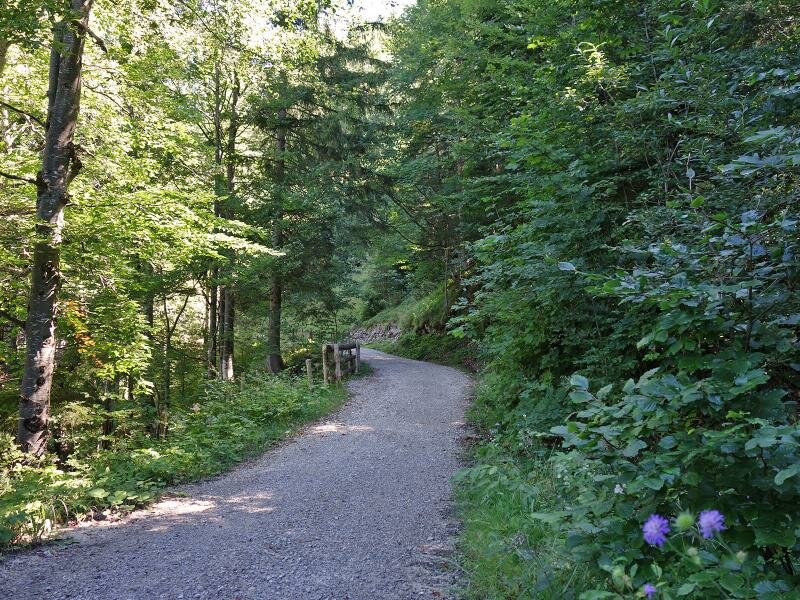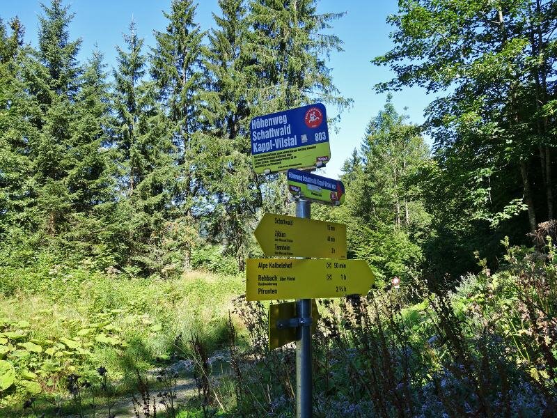 Starting from the parking space in Katzensteig (near Zöblen in the Tannheimer Tal valley), we follow the course of the Vils stream along a field path to Schattwald. At a slightly lower located junction, we take the path no. 803 (Schattwald Kappl-Vilstal high-altitude trail) leading up to the highest point of our hike (1,110 m asl). The trail snakes its way through the mountain pastures and forests, and finally follows a meadow path downhill to the Kalbelehof Alp.
