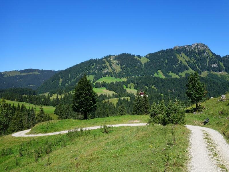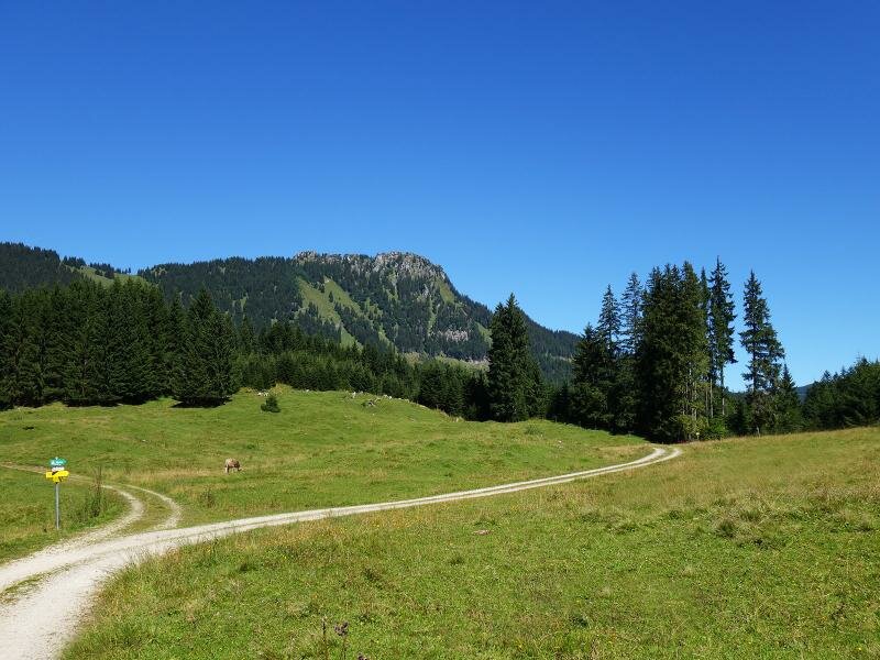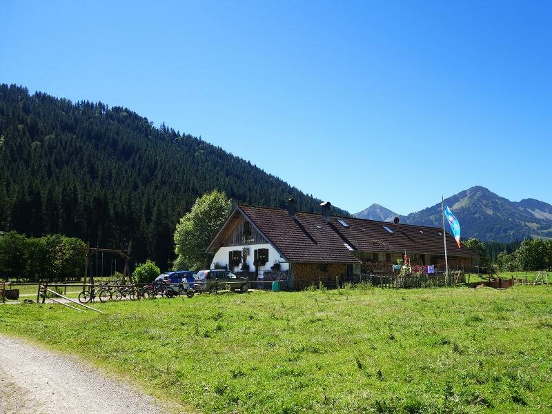 By the way: the Kalbelehof Alp is located on Tyrolean territory, but it has been operated by Bavarian farmers since ancient times, they have brought the young cattle from Pfronten onto these mountain pastures. We return to Zöblen on the same road. The trail is also signposted as MTB trail, so take care!