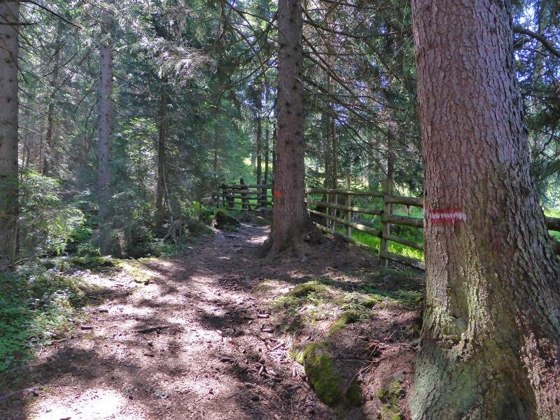Our route follows now a forest path, without any considerable ascents to the Sattelmöser wet meadows at the edge of the wood, a biotope and retreat area for birds, amphibians and other animals. Nearly unnoticed we cross the border to South Tyrol, then we cross the Isarco river which rises in this area.
