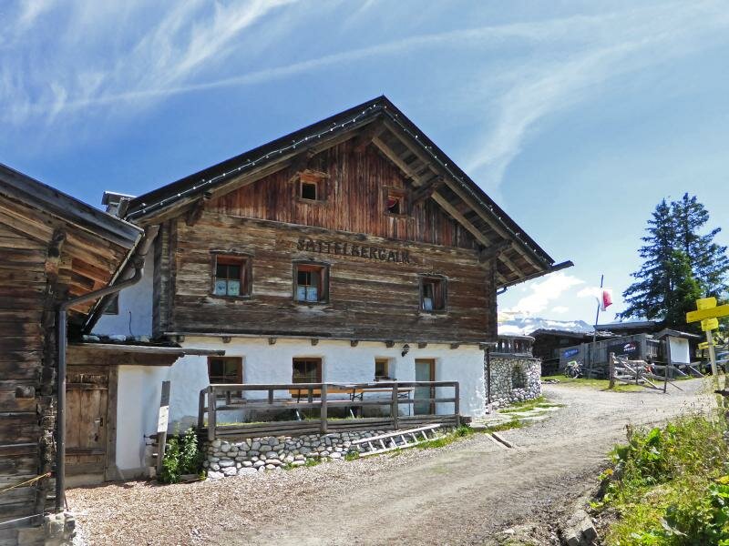 In Gries am Brenner we follow the road into the Obernberg valley, and immediately after the motorway bridge the hiking path to the Sattelbergalm alpine pasture branches to the left (marker “Wassersteig”). First it follows the forest road and proceeds then through the wood. After about 90 minutes we reach the Sattelbergalm pasture at 1,637 m asl (rest point).