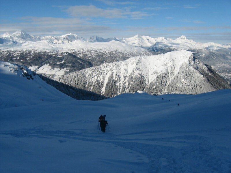 Our downhill run takes place along the ascent route, the slopes even allow some varieties.