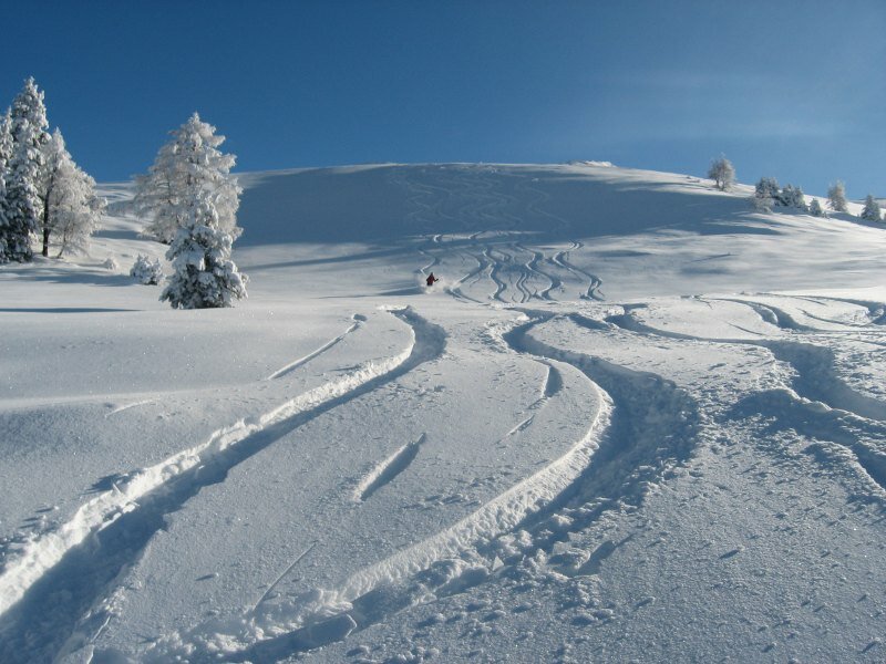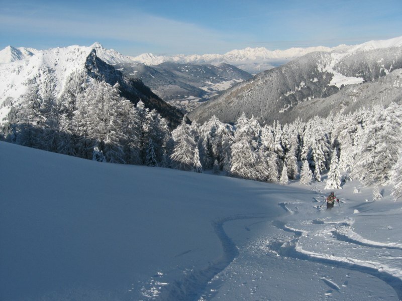 Notice: easy and much-used ski tour, only little exposed to avalanches. Please don’t climb up through the forest but via the swathe, the area is a breeding area for wood grouse (watch the signs)!