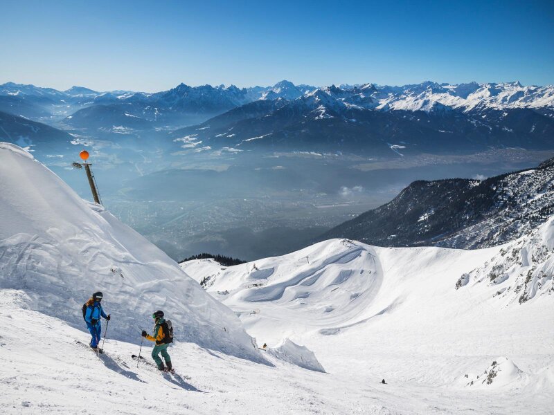 Fancy going straight from the Innsbruck Christmas Market to the snow? Or perhaps some shopping before hitting the slopes? Both are possible at the Nordkette Skiing Area on the Seegrube and the Hafelekar. The lifts whisk you from the city centre to the top in just 20 minutes. The Nordkette is not only popular with skiers and sun-seekers but is also known far beyond Austria's borders as a boarding hotspot. On the Seegrube, known locally as the "Gruabn", you'll find the world's only in-city snowpark: the Nordkette SkylinePark. Here, freeskiers and snowboarders will find ideal conditions to prepare for competitions - a true freestyle paradise.