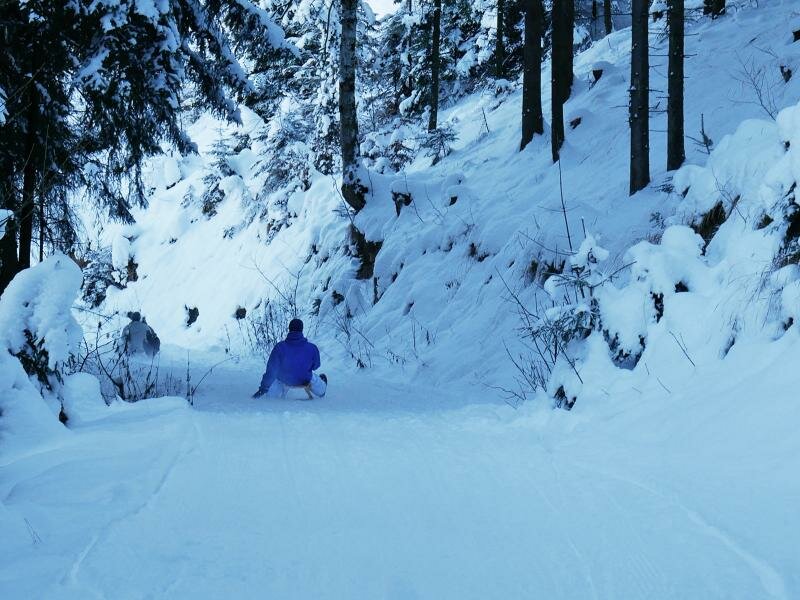 Please note: Of course the tobogganers can take the cable car from Reith up to the mountain station. There are only 1.5 km to walk (flat) until the starting point of the sledge run.